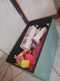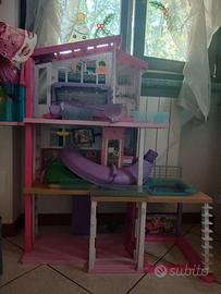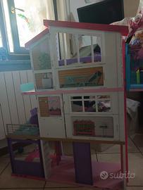 Vendo casa di Barbie gia montata ma provvista di scatola. Comprata un anno fa. Completa di tutti gli accessori e scivolo. Una scatola piena di barbie e accessori.