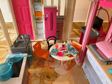Casa di Barbie, vendo per motivi di spazio corredata di annessi mobili aggiuntivi acquistati a parte: pasticceria, cucina, pizzeria, atelier cucito con macchina da cucire, trave per ginnastica. In regalo una serie di oggetti. Piccolo difetto all’ ascensore( come da foto )che però è funzionante.