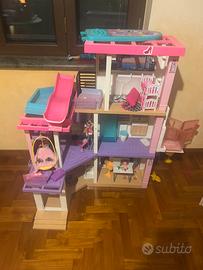 Barbie Casa dei Sogni, Casa a 3 Piani con 8 Stanze, Ascensore e Piscina con Scivolo, Oltre 60 Accessori, Regalo per Bambini da 3 a 7 Anni, Come nuova