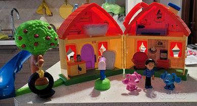 Come da foto, vendo casa di Blue's Clues richiudibile e trasportabile con manico, compresi tre personaggi, mobili interni, sonora ma ferma da un pò tempo per cui gli effetti sonori non partono bisognerebbe cambiare le batterie e farla ripartire. Usata poco, come nuova, solo un piccolissimo difetto (si è staccato un pezzetto di adesivo dall'interno).