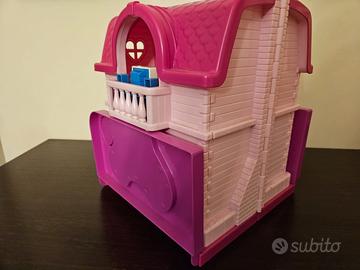Casa di hello Kitty rosa e fuxia con personaggi. La casetta può essere aperta e chiusa.