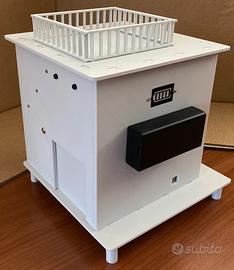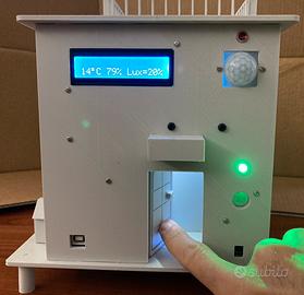 Casa domotica giocattolo 200x200x230 mm, esemplare unico, costruita con stampante 3D. Per il funzionamento utilizza due schede Arduino con vari sensori e motori.
