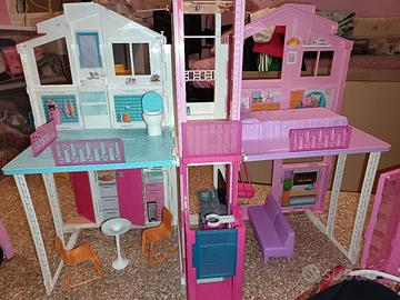 Causa trasloco vendo come da foto casa Malibu di Barbie con scatola originale,macchina cinquecento,elicottero ,camper e armadio.
