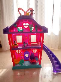 Casa Minnie in ottime condizioni con tutti gli accessori. Minnie e il gatto un poco rovinati come da foto (perso un poco di colore sul naso il gatto e sulle mani e scarpe Minnie)