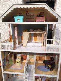 Casa per bambole in legno in buono stato con accessori