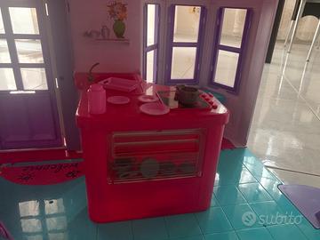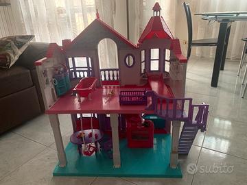 Vendo casa delle barbie accessoriata con letto culla mobile bagno cucina salotto tavolo in ottime condizioni. Misura aperta 62x82x56, chiusa la profondità è 25.