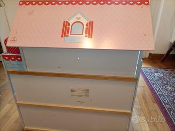 il Cottage delle bambole Chelsea KidKraft è alto oltre 60 cm, con tre piani e cinque stanze. Ha finestre che si aprono e si chiudono, due scale in plastica sagomata e grafica su tutti i pannelli. Il kit di 16 mobili in dotazione consente ai bambini di divertirsi decorando la casa, sia che si tratti di arredare la cameretta con i letti a castello o creare la sala perfetta in cui collocare il piccolo pianoforte. Casa ideale per bambole da 13 cm.