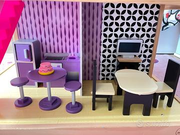 Casa delle bambole Kidkraft in legno con tutti gli accessori in legno compresi. Usato come nuovo, adatto a bambole ad altezza Barbie.