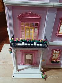 Casa romantica completa dotata di tutti i mobili e personaggi con piano aggiuntivo + ampiamento laterale (inoltre è dotata di una piattaforma di legno che può muoversi grazie alle sue ruote).