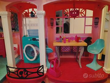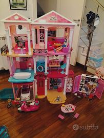 Vendo Casa dei sogni completa di accessori con aggiunta lavatrice divani in casa come da foto piu' armadio, camper, fiat 500 , bici , motorino , 4 barbie , 1 ken e 2 bambine il tutto in ottimo stato con tanti vestiti e scarpe ecc ecc.....