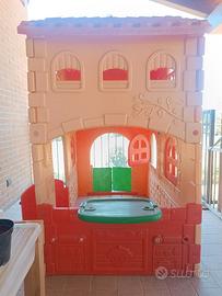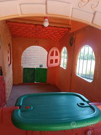 Vendo casa/villa Feber,molto grande,perfetta per giocare anche in più bambini.La casa è in buono stato, assolutamente solida ed utilizzabile.Feber sono giochi di alta qualità.La vendo ad un prezzo affare,visti i segni di utilizzo.Acquistata a più di 200 euro,ora,a prezzo di listino è 300.La maggior parte del colore è ottima,la casa è stata tenuta su un terrazzo.Purtroppo in alcuni punti il colore si è sbiadito col sole.Ci sono normali segni di usura da utilizzo .Un angolino del tetto si è rotto può essere facilmente incollato.Mancano alcune viti,ma a livello strutturale ci sono tutte,quindi la casa è solida. Non visibili in foto ci sono anche un'altra panchetta,come quella che si vede in interno,e la decorazione di finte piante,da mettere in entrata.Possibilità di ritirarla in loco, già smontata.Non faccio spedizione.