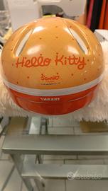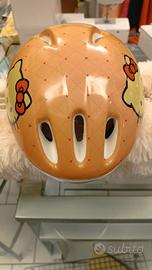 Casco protettivo per bambini con un allegro design di Hello Kitty. Ideale per le avventure in bicicletta. - Colore principale arancione. - Decorato con cuoricini rossi. - Immagine di Hello Kitty sul davanti. - Aperture per la ventilazione.