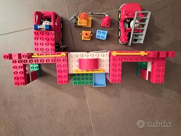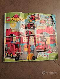 Caserma dei pompieri Lego Duplo, completa di tutti i pezzi, personaggi e accessori.