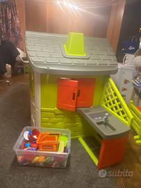 Casetta Smoby praticamente nuova, è sempre stata al coperto, quindi in ottime condizioni. Accessoriata di panca, barbecue, camono, campanello, fioriera e utensili da cucina.