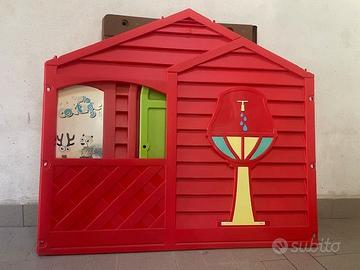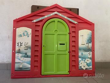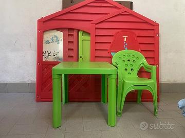 Vendo casetta per bambini da esterno in plastica resistente, completa di tavolino e sedie abbinate (come da foto), ideale per giardino o terrazzo. - Porta apribile - Finestre decorate - Struttura solida e stabile - Dimensioni: 130cm larghezza / 103cm profondità / 85cm altezza / 114cm altezza al centro - Set tavolino + sedie inclusi - Adatta a bambini circa 3–6 anni La casetta è in buone condizioni, completa e subito utilizzabile. Normali segni di utilizzo ma ben tenuta. Perfetta per far giocare i bambini all’aria aperta in sicurezza