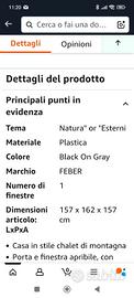 Casetta Feber "COTTAGE" . Pagata circa 500, prezzo su Amazon euro 416 come da foto, unica cosa non presente il campanello. Casetta indistruttibile, solida e pesante, a differenza delle altre casette deboli che si piegano e volano via con il vento***Misure presenti in foto***