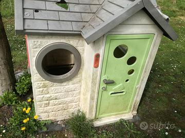 vendo casetta bambini per giocare. dove ci sono le finte tegole ha un paio di buchi, uno più grande e uno più piccolo causa grandine. Per informazioni, foto o altro contattatemi. valuto proposte. Per ovvi motivi, solo consegna al mio domicilio