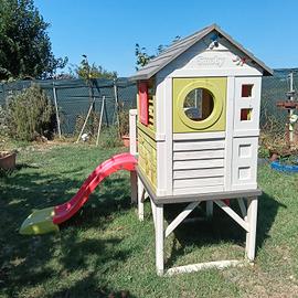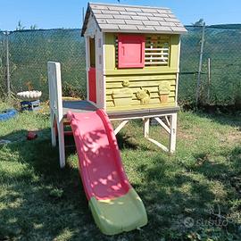 Casetta da giardino per bambini, tenuta bene(solo da ripulire) Dimensioni:160x230 x 200 cm di altezza circa. Lo scivolo è anche munito di attacco per pompa d'acqua.