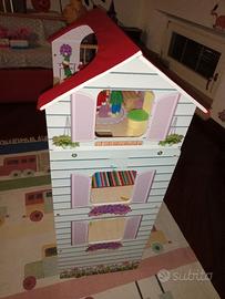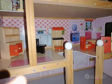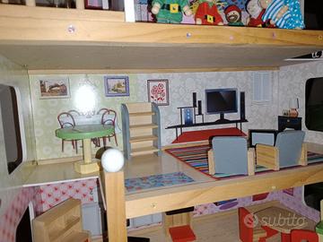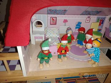Casetta per bambole con piccoli arredi (famiglia di pupazzini natalizi di legno in omaggio).