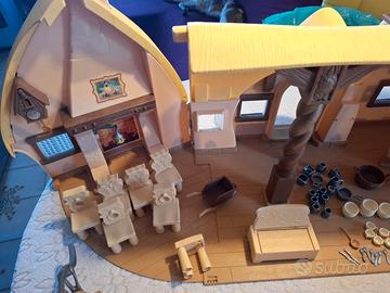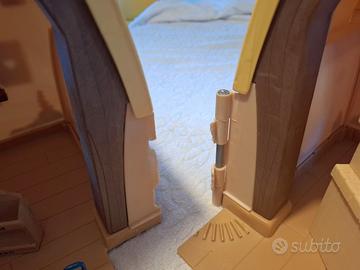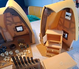 La casetta è in buone condizioni. Da segnalare quanto segue: manca la bambola di Biancaneve, la cerniera della parte apribile di destra è rotta, una finestrella trasparente è mancante. Tutti i pezzi disponibili sono come da foto.