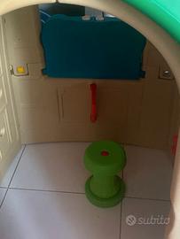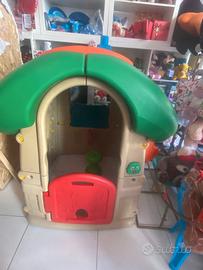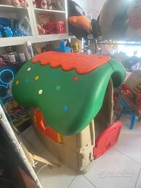 Casetta funghetto nuova di zecca è stata solo in esposizione in negozio in solida plastica antiurto antigraffio, comunemente viene usata nelle ludoteche per la sua robustezza e facilità nel montaggio smontaggio, può stare tranquillamente sia all'interno che all'esterno non teme pioggia freddo caldo, all'interno trova spazio uno sgabello e il piano cottura richiudibile più altri giochini manuali. Il suo prezzo è di 650/ 800 euro, io la propongo a 250.00 . Vero affare se volete regalare un gioco di eterna durata.