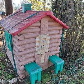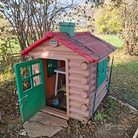 Ampio chalet che riproduce fedelmente la tipica costruzione di montagna, studiato per garantire massima sicurezza e divertimento. Il suo interno è spazioso e completo di ogni dettaglio: finestre con persiane apribili; porta ; caminetto che si trasforma in tavolino all'aperto; panche che scorrono attraverso la parete per essere utilizzate sia fuori che dentro casa; comignolo staccabile da utilizzare anche come seggiolino. Il montaggio è semplice e veloce.