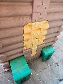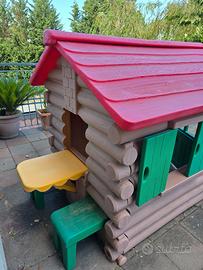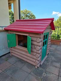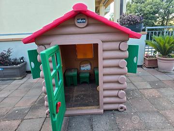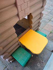 Ampio chalet che riproduce fedelmente la tipica costruzione di montagna, studiato per garantire massima sicurezza e divertimento. Il suo interno è spazioso e completo di ogni dettaglio: finestre con persiane apribili; porta con chiavistello; caminetto che si trasforma in tavolino all'aperto; panche che scorrono attraverso la parete per essere utilizzate sia fuori che dentro casa; comignolo staccabile da utilizzare anche come seggiolino. Il montaggio è semplice e veloce.
