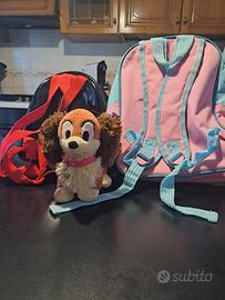 .Piccola cuccia completamente attrezzata per far giocare i bambini. .Due zaini scolastici .