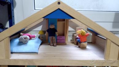 Come nuova con personaggi e arredamenti stanze. Tutto in legno