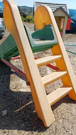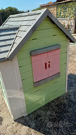 misure della casetta: 118 x 104 x alta 140 cm misuro dello scivolo: 180 x altezza 105 se presi insieme €150 casetta in ottime condizioni, solo sbiadita. anche lo scivolo sbiadito, con un pezzo da riparare (non necessariamente).