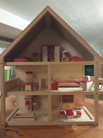 Bellissima casetta in legno con accessori e famiglia completa in legno.