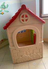 Casetta feber , fantasy house altezza 1,24 ,larghezza 1,08 , profondità 85 cm. , tenuta benissimo con ancora adesivi da attaccare e scatola piu tandine per due finestre. ( no spedizione)