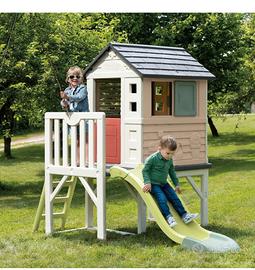 casetta per bambini con scivolo porta e finestra oblò scorrevole.