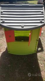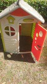 Casetta 124x117x132 cm, eccellenti condizioni, riposta sempre in cantina durante inverno, colori vividi, adesivi integri, nessun segno del tempo. Una mezza porta, una porta con maniglia e serratura e due finestre con persiane richiudibili. Prodotto di qualità, plastiche con trattamento anti UV, Made in France.