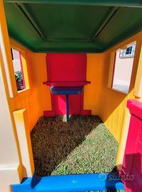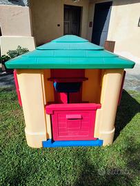 Casetta gioco per bambini, completa di tutte le parti. Porta e due finestre apribili, tavolino interno richiudibile. Da giardino, terrazzo o interno. Smontabile e rimontabile facilmente (5 parti principali).
