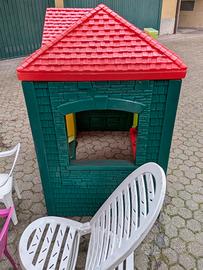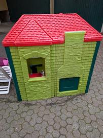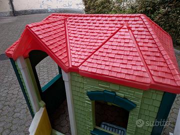 Casetta Gioco da Giardino tipo Little Tikes Cambridge Playhouse Evergreen, pensata per offrire uno spazio di gioco confortevole pur rimanendo compatta per il giardino. Ecco le misure principali del prodotto montato: Altezza: circa 131 cm Larghezza: circa 130 cm Profondità: circa 94 cm. Altre informazioni utili: Peso: circa 37-39 kg, il che la rende molto stabile una volta posizionata. Età consigliata: dai 18 mesi fino ai 5-6 anni circa. Altezza della porta: il vano d'ingresso è alto circa 104 cm, permettendo un facile accesso ai bambini piccoli. Già smontata, dimensioni pezzo più grande (tetto): 90*130, altezza 35 cm. Colori come da foto, tutto in ordine. Possibile acquisto a parte dei quadretti in plastica per sopraelevarla dal terreno. Tipo: Casetta gioco in plastica per giardino. Materiale: Struttura robusta e resistente agli agenti atmosferici. Caratteristiche: Include pareti colorate, tetto, porte e finestre apribili per il gioco di ruolo. Dimensioni: Spaziosa per ospitare più bambini contemporaneamente.