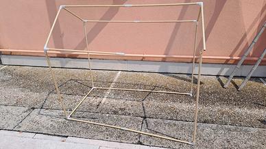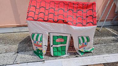 Casetta gioco con copertura in tela, l'intelaiatura è da sistemare, come si vede dalla foto, mancano dei pezzi che si possono sostituire con dei tubi da elettricista o listelli di legno.