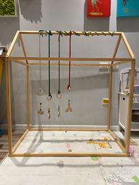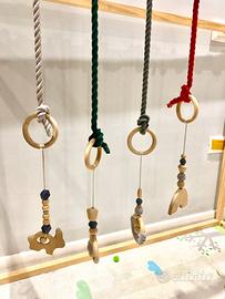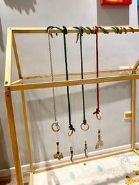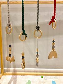 Vendo Casa in legno per bambini insieme a pendenti made in Norvegia e cordini in cotone intrecciato made in Regno Unito acquistati meno di un anno fà da 3 venditori singoli tramite il sito Etsy, i prodotti hanno un ottima fattura e sono stati fatti a mano. La casa di legno si presta a moltreplici usi come palestrina per neonati, letto montessoriano se accoppiato ad un materasso o solo a zona giochi. Utilizzato poco meno di un anno, tutto in ottimo stato viene venduto con brucola e completo di viti per il montaggio. Tutti i prodotti si presentano smontati e imballati, possibilità di spedizione. Alternativa ritiro a mano a Roma Sud - Tuscolana - Metro Porta Furba / Piano Terra