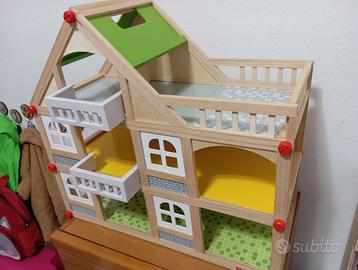 Due piani, con 2 balconi, 2 letti, cassettiera, divano, 2 poltrone, tavolino, 2 sedie, tavolo, 2 mobiletti cucina.
