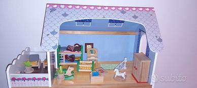 Casa in legno con doppi personaggi e molti accessori