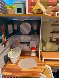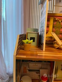 Casetta in legno per le bambole (dimensione Barbie). Marca Kinderkraft. Usata ma in pttime condizioni. Completa di tutto l’arredamento come da foto.