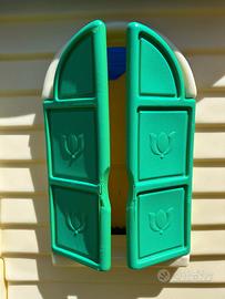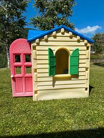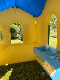 Casetta Little Tikes per bambini con all'interno lavandino con angolo cottura e telefono.