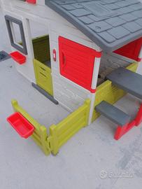 Vendo casetta Smoby modello Neo Friends House misure: larghezza 217cm profondità 171cm e altezza 172 cm con campanello completo di batteria.Accessori tavolo/panche/nr. 2 vasi per fiori e altri accessori.