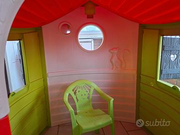 OCCASIONE! Vendo bellissima casetta per bambini per giocare in libertà e sicurezza, marca Smoby. Con porta (e finestrella a forma di cuore), 2 finestre e oblò posteriore. In pratica ogni lato ha un apertura luce. Lavorazioni interna ed esterna sul retro la rendono ancor più bella. Usata ma in condizioni pari al nuovo, usata pochissimo e ben tenuta. Vendo per inutilizzo per crescita dei miei figli. Prezzo 120 euro trattabili. Preferibile ritiro a mano per chi è in zona per comodità. E' comunque possibile smontare facilmente la casa per un trasporto più agevole. No perditempo.