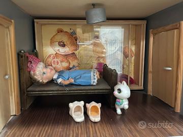 Vendo casetta per le bambole, leggermente rovinata (è uscita qualche vita e si è rotta la recinzione del terrazzo), ma per il resto è una casetta fenomenale!! Con le porte che si aprono, armadi, come una casa reale in miniatura, perfino la tenda che viene giù come quelle normali. Davvero fantastica!! Compresa di tutti gli accessori e le bamboline. Sono disposta a trattare il prezzo