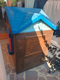 Casetta in legno con tetto in plastica per bambini della Littletikes, allestita in un secondo momento per cuccia cani (mai usata) con finestre chiuse ma comunque riapribili. Il legno è stato trattato periodicamente con impregnante. Tuttora in ottimo stato. No spedizione.
