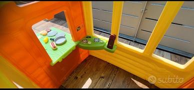 Casetta da gioco per bambini Little Tikes in ottime condizioni, È sempre stata al riparo sul terrazzo e non è scolorita. Ha un tavolino da picnic incorporato e 2 panchine, è dotata di molti accessori, tra cui: cibo finto, piatti, telefono finto e un campanello elettrico che emette suoni.