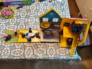 Casetta richiudibile Peppa Pig in ottime condizioni (ha solo una mensolina viola che è stata ricostruita in legno perché mancante) + 10 personaggi. La casetta da nuova costa 47€ e i personaggio circa 3€ (30€ di personaggi), per un totale complessivo di valore di circa 77 €. Vendo a soli 30 €. Sono di Arezzo