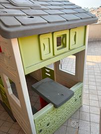Casetta per bambini Smoby, doppio ingresso davanti e retro,tavolino interno con panchette, campanello.