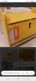 pezzo iconico ikea, acquistato a più di 100 euro segni minimi di usura, il più rilevante in foto. altezza totale 50, larghezza 70. da sistemare la molla di sospensione del coperchio. profondità 39